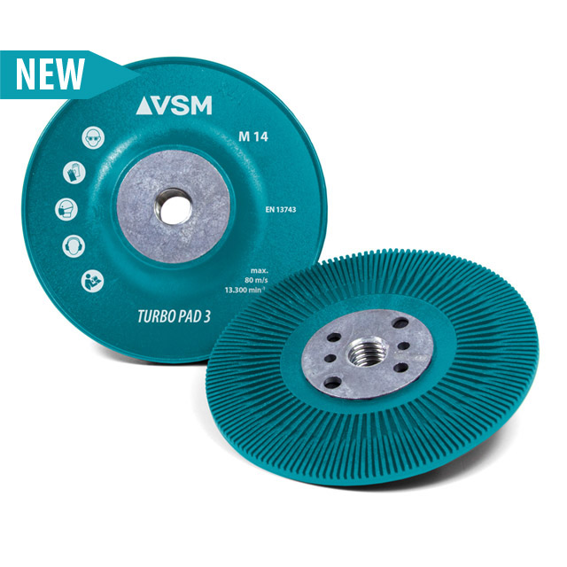 Prato suporte para discos de fibra VSM TURBOPAD 3, é um prato extra rijo e ventilado com uma ligeira curvatura que permite o melhor aproveitamento do disco de lixa.