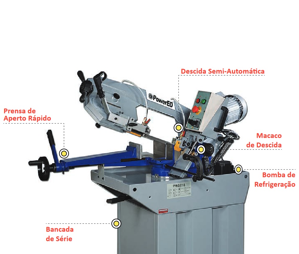 O Serrote de Fita PBS210A com cilindro de descida e tensor da marca POWERED é um equipamento de alta qualidade e eficiência para cortes precisos em diversos materiais. Com uma voltagem de 400V e frequência de 50Hz, este equipamento possui um motor de 750W de potência, garantindo um desempenho excelente.
